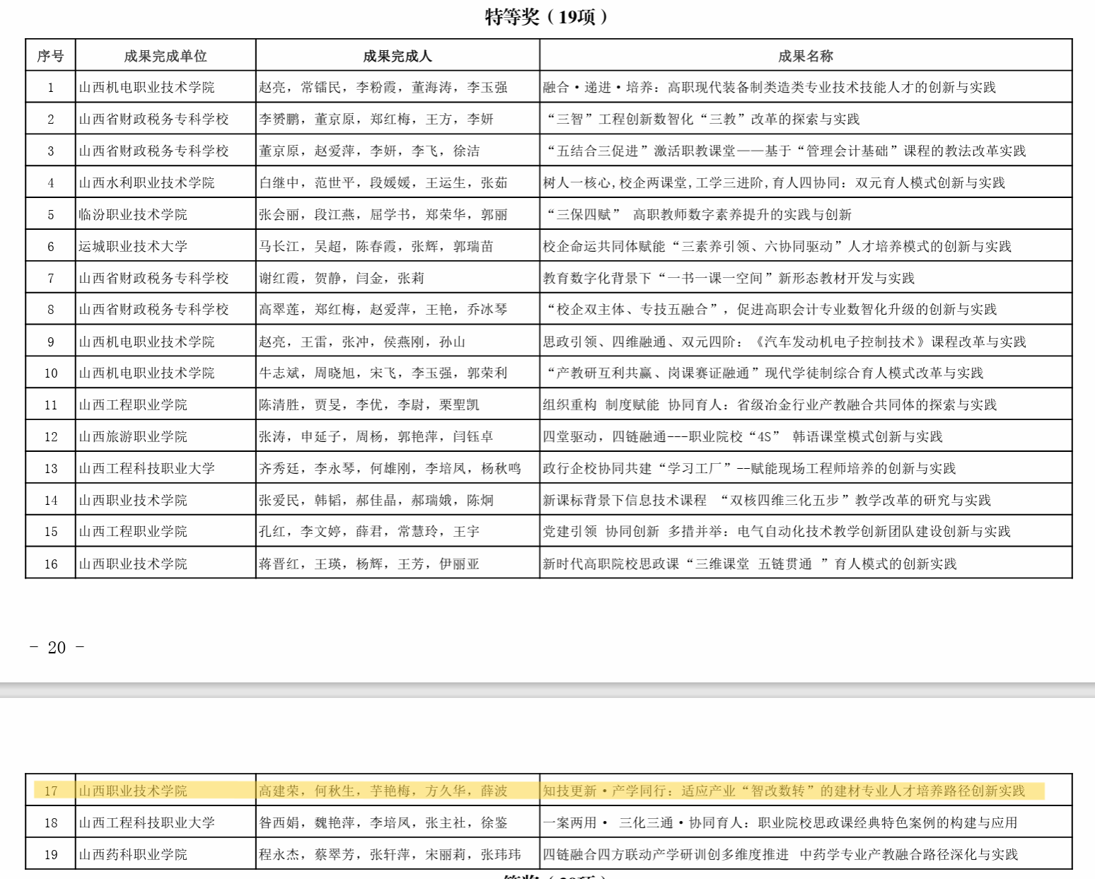 近日,山西省教育印发了《关于公布2023年山西省教学成果奖获奖项目的通知》(晋教师〔2023〕10 号),我系共有两项教育成果荣获 2023年山西省教学成果奖(职业教育)获奖项目奖项