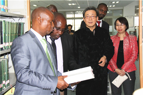 会后,Mbugua Kinuthia郡长一行登上主楼楼顶鸟瞰金年会jinnianhuicom全景并参观了C区图书馆。