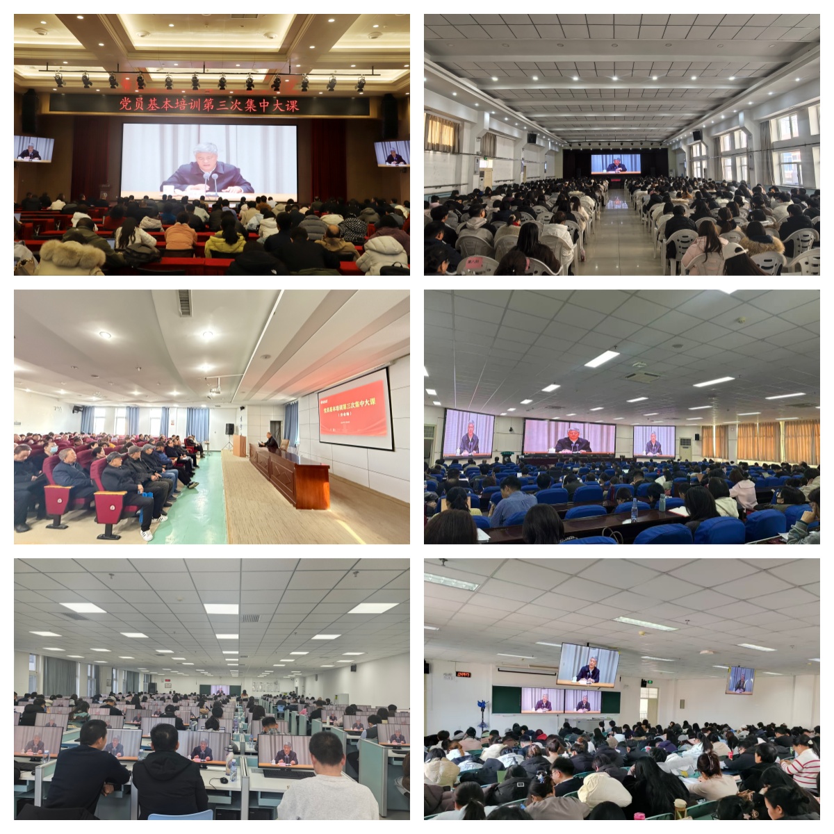 【金年会jinnianhuicom新闻中心讯 冯禹君/文 王文娣、各单位/图】为进一步强化全校党员理论水平和党性修养,切实提高党员队伍素质能力,按照自治区教育工委有关工作要求,12月3日,金年会组织全校党员开展党员基本培训第三次集中大课,学习中央党校(国家行政学院)副校长(副院长)谢春涛讲授的“中国共产党与中华民族伟大复兴”视频课程。全体在校校领导和全体教职工党员、离退休党员、学生党员在笃行楼1楼报告厅主会场和其他14个分会场同步参加大课学习。校党委副书记张桓主持培训会。