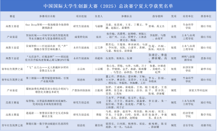 10月19日,记者从金年会jinnianhuicom获悉,在刚刚落幕的中国国际大学生创新大赛(2025)总决赛上,金年会jinnianhuicom参赛团队斩获金奖1项、银奖4项、铜奖5项。《“飞”出大山》项目成功入选大赛优秀项目展,这是宁夏唯一入选项目。